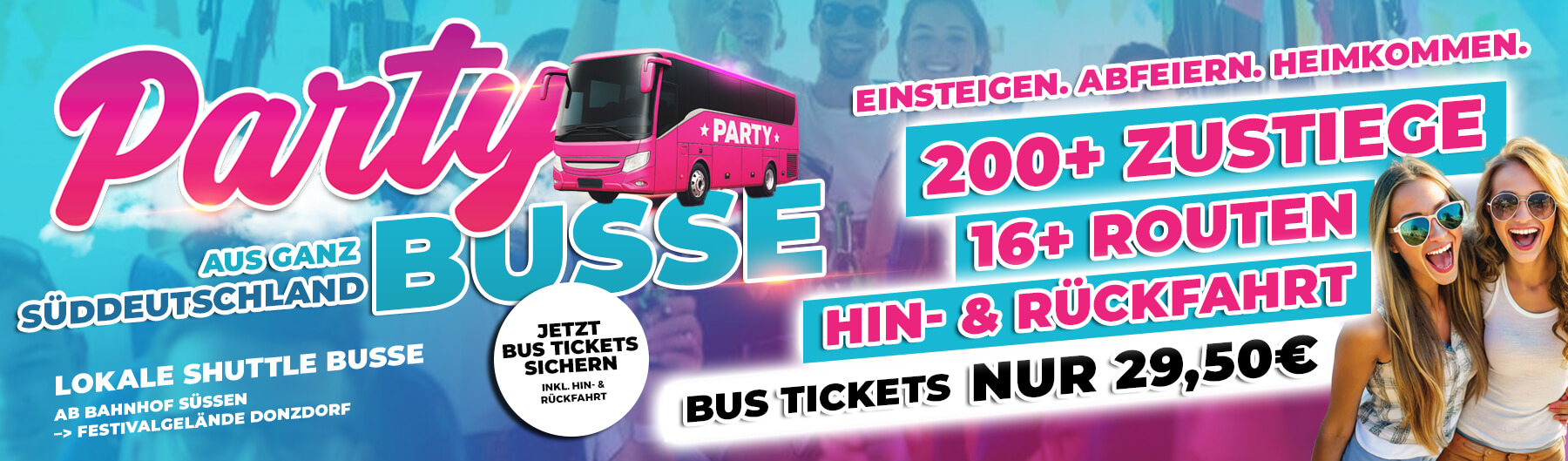 Ein Shuttle Bus (ca. 7 min Fahrzeit) vom Bahnhof Süßenzum Festivalgelände nach Donzdorf bieten wir auf dieser Webseite im Ticketshop an.
